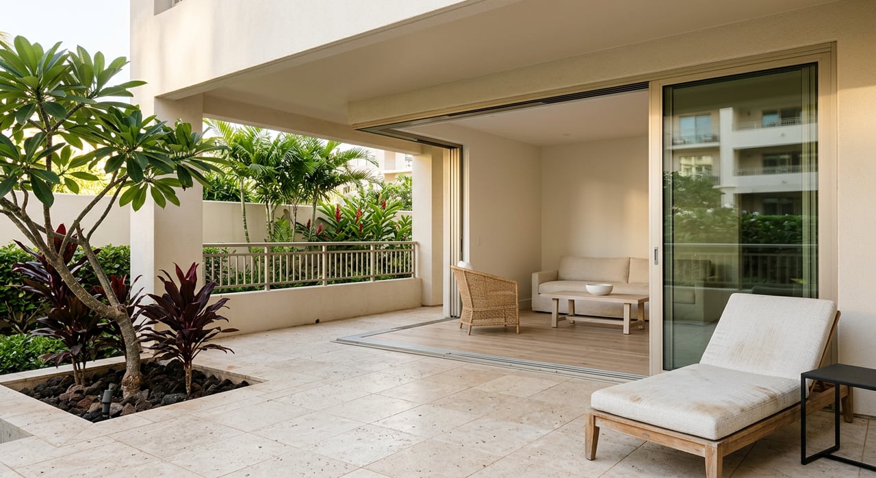 - Use sealed concrete, salt-tolerant stone, and stainless or powder-coated aluminum for outdoor furniture and fixtures.